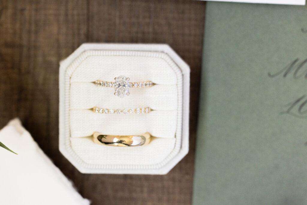 But my favorite “detail”? The rings. Seeing the classic gold band paired with that stunning oval solitaire in their velvet box made the reality of the day set in.